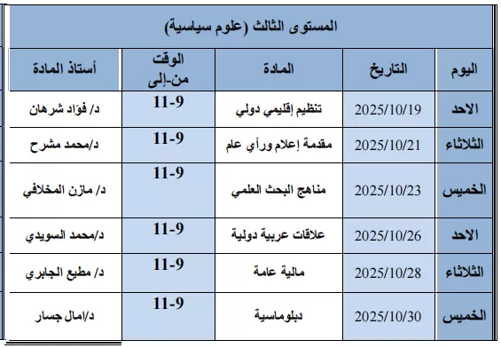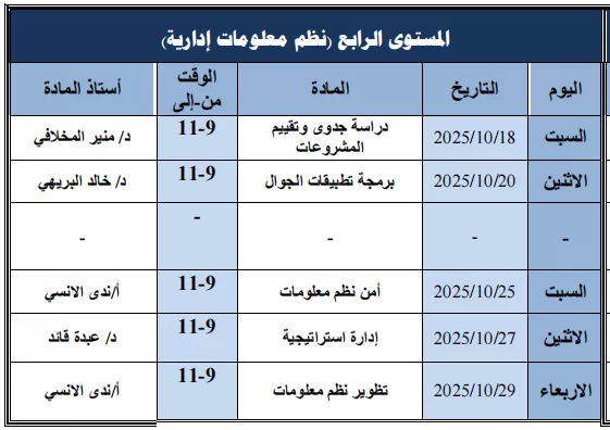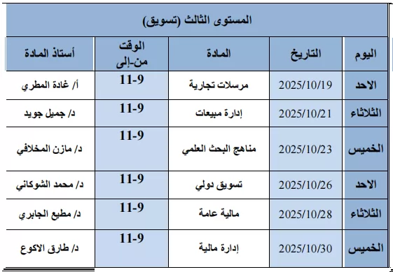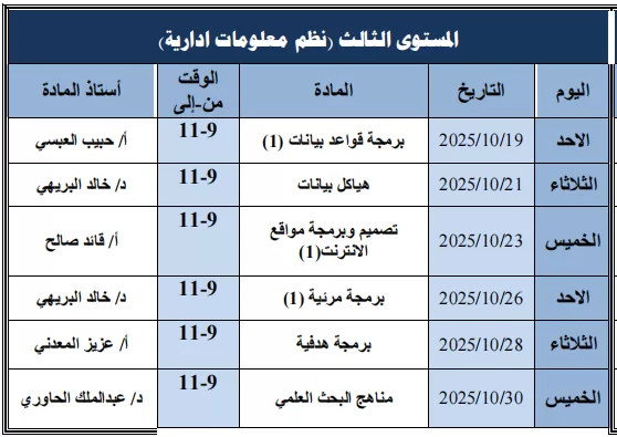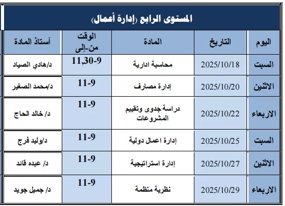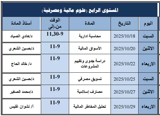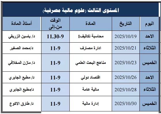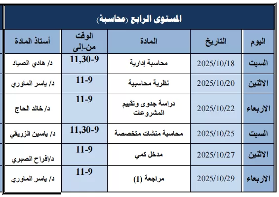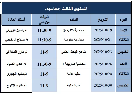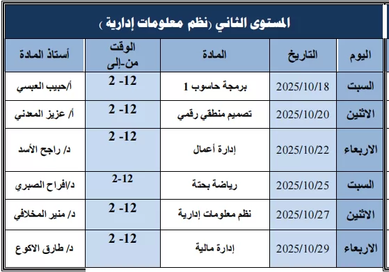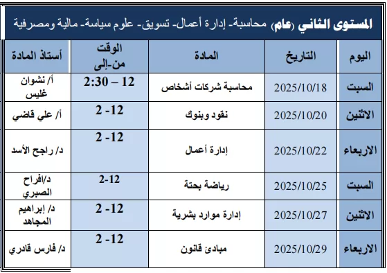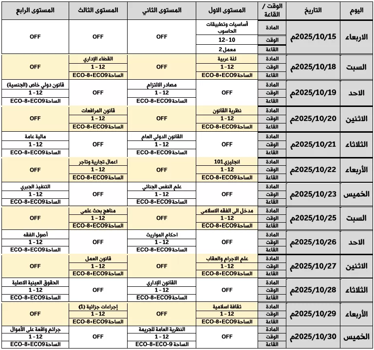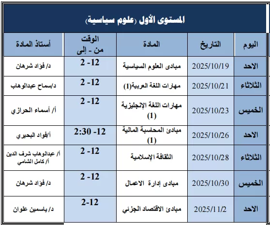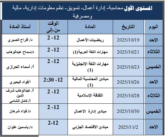 جداول امتحانات الفصل الدراسي الأول للعام الجامعي 1447هـ - 2026/2025م