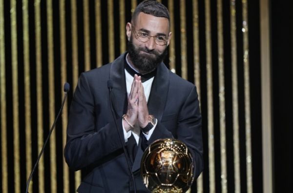 ونال بنزيمة جائزة الكرة الذهبية بعدما قاد ريال مدريد لحصد لقبي دوري أبطال أوروبا والدوري الإسباني الموسم الماضي، ليصبح أول لاعب فرنسي يتوج باللقب منذ فعلها زين الدين زيدان في 1998.